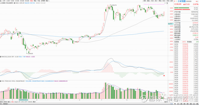 盘面分析 9月18日,今日三大股指微幅高开,盘初市场冲高回落,创业板指一度跌至0.75%,随后指数再度上行,但做多力量偏弱;午后大金融板块强势爆发,沪指重返3300点上方并涨超2%,深成指、创业板指亦涨超1%。截至收盘,沪指涨2.07%,报3338.09点,深成指涨1.77%,报13245.09点,创业板指涨1.52%,报2596.08点。两市成交额达8000亿元;北向资金净流入尾盘一度净流入近200亿元(注:富时罗素纳A调整今日盘后生效,共新纳入150只中国A股)。 技术上,随着今天的放量上涨,大盘周线收出孕含线,由于周线已经接近粘合下周初一旦延续上涨突破3370点一线,有望形成二次上攻的态势,而从日线看,前面一直讲了日线调整随时可以结束,由于日线上积累了相对充分的做多动能,而下周初将第四次面临是否金叉,日线也将面临是否再次回归零轴的强势区域,而从大的形态看,大盘连续二个月保持着区间振荡的强势格局,一旦日线调整结束,大盘就有望走出向上突破的走势。 整体来看,周五市场各股指平开后虽有一定的震荡格局,但是在大金融等蓝筹板块的带动下各股指纷纷走强,权重拉升的效应,沪指一鼓作气收复3300点整数关口站上60日线,形态上呈现出攻击姿态,各主要板块均开进进攻阵位,量能相较上个交易日明显放大,场内筹码完成有效换手,为行情向纵深发展打开了大门。 今天走势 继续确认权重启动拉升的性质,本周主要防范在箱顶上部3350-3450遇阻 上周分析了目前大盘的状态,以及后市可能出现的变化,其中主要观点是:这波自7月13日以来的中期调整已进入末期,而在3250-3200是这个箱体整理的底部区域,后面在这里停留的时间已不会太长,从上周开始(最迟本周),将探明9月“先抑”的低点,“后扬”会先从3250-3200探低回升,并进入明显的反弹周期,并有望突破60天线的压制,向3350-3450的箱顶上部折返,但节前很快突破3458前期高点的概率较小,真正突破多半会在节后,上周市场已经验证了我们观点的前半部分,从本周起开始验证后半部分,本周继续关注向3350-3450箱顶上部折返的力度和空间,后面只有有效突破3450,才算新一轮大涨启动,周一短线压力在3356-3386(9月4日缺口3374也在这里);创业板上方压力在2636-2680。 今天操作 节前继续坚持反向策略,再上冲到3350-3400及以上逐步收缩 由于长假已越来越近,操作上还不宜过于激进,节前继续坚持反向策略,如果再上冲箱体的上沿,即3350-3450,从指数上看还是要以分批减仓为主,将仓位控制在半仓左右,具体参考数值为,以3300为箱体中轴,3300以下,逐步加仓,在3250-3200逐步将仓位升至5-7成(3200以下可满仓),反之,到3350-3400则逐步收缩,降到半仓或以下,特别是再冲前高3458一线,连续调整的优质核心股(大消费和大科技,以及券商和低估值蓝筹),在相对低位又出现较好的低吸机会,这些优质资产也要做波段操作,连续大涨应分批减磅,波段下跌20-30%及以上则可择机低买回来,低价题材股可以关注一些在低位刚放量启动品种,特别基本面出现转机,股价进入安全边际的个股是考虑用一部分资金参与,短线连续拉升10-20%以上,先获利兑现,不要贪心。 北向资金: