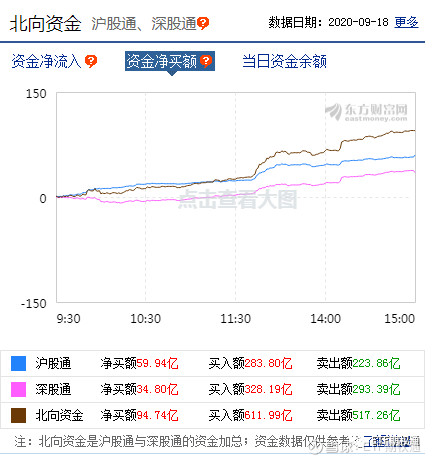 北向资金流入94亿,再次大举流入。 上证指数