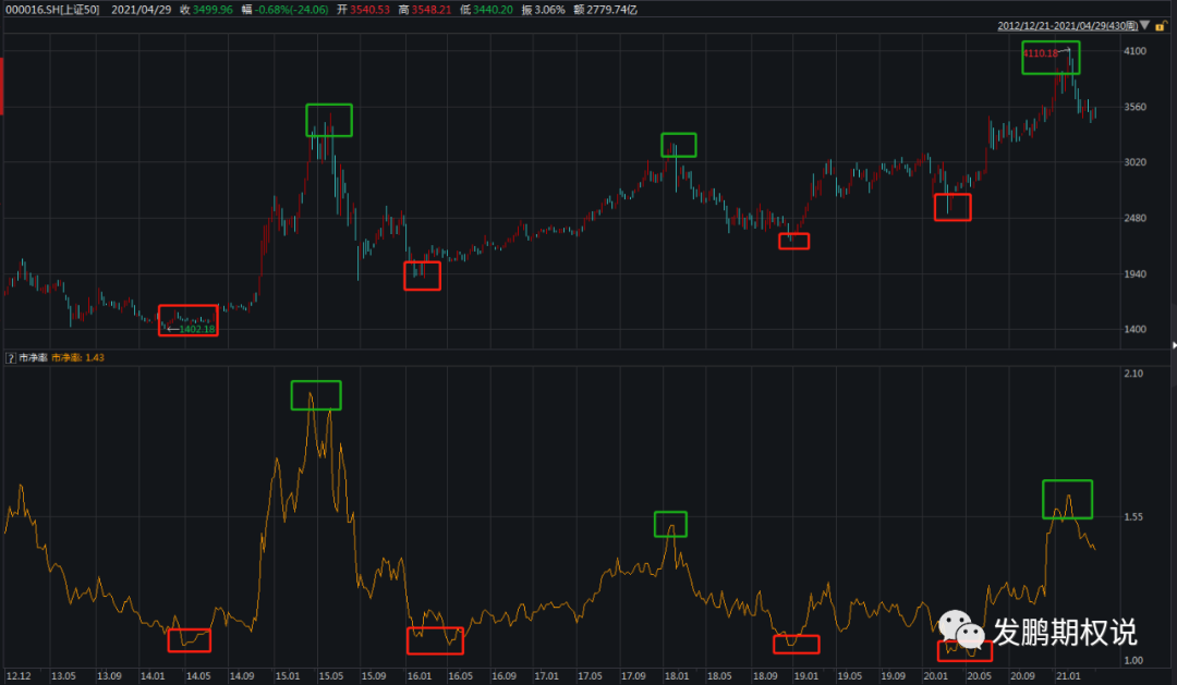在正式说分享规则前,先说两点。第一点是上边的回测是基于50ETF的,但考虑到沪深300指数可以稍广泛的代表中国经济核心企业,后边的分享基于510300ETF来做,核心头寸是510300ETF期权。对比50指数的历史PB估值,粗略定300指数的几个关键PB估值点位是:1.4倍、1.65倍、1.85倍。