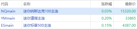 周五美股盘前,三大股指期货小幅上扬,截至发稿,纳指期货 $NQmain 现涨0.03%,标普500指数期货 $ESmain 涨0.15%,道指期货 $YMmain 涨0.20%。